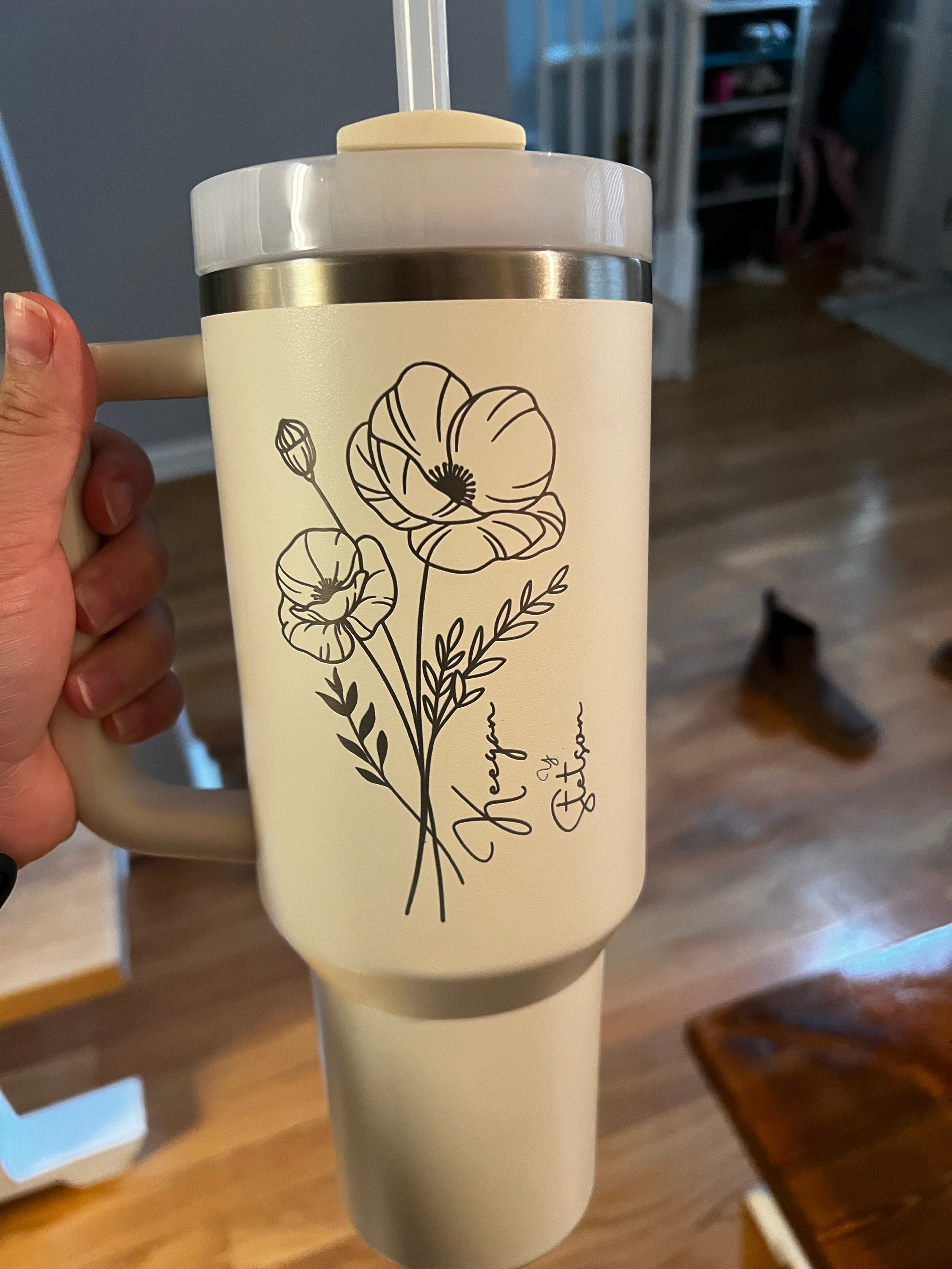 Personalized Birth Flower Stanley Tumbler With Name
